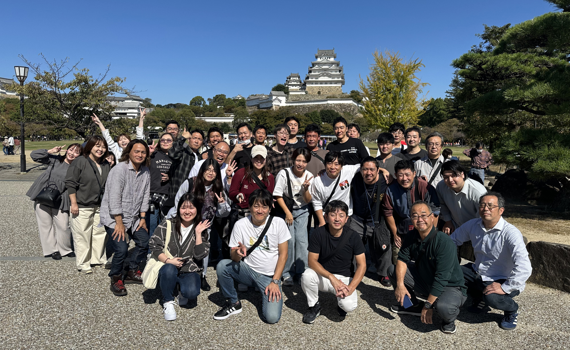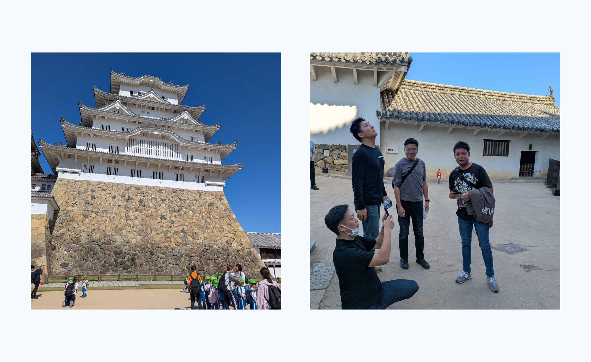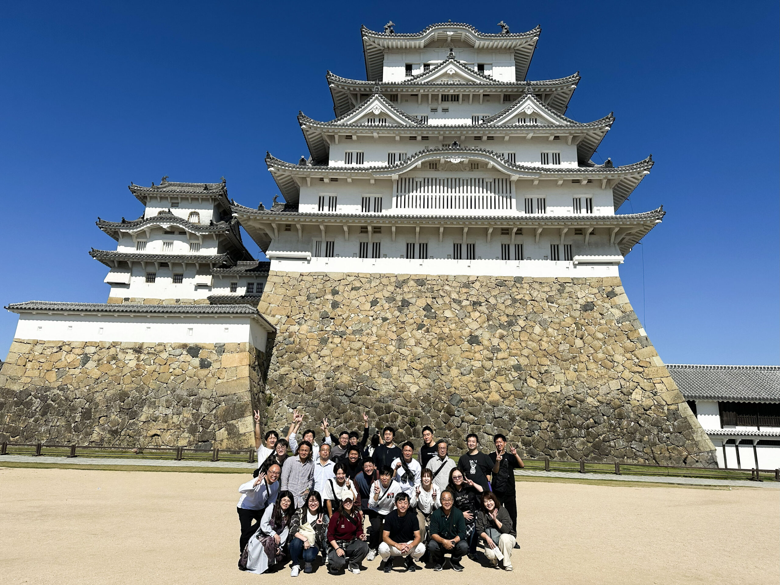 二日目は淡路島をでて鳴門海峡を渡り、『姫路城』へ向かいました。創建当時の建築が修復をしながらもほぼそのまま残っている現存天守ということでしたが、それを感じさせない美しさで圧倒されました。
