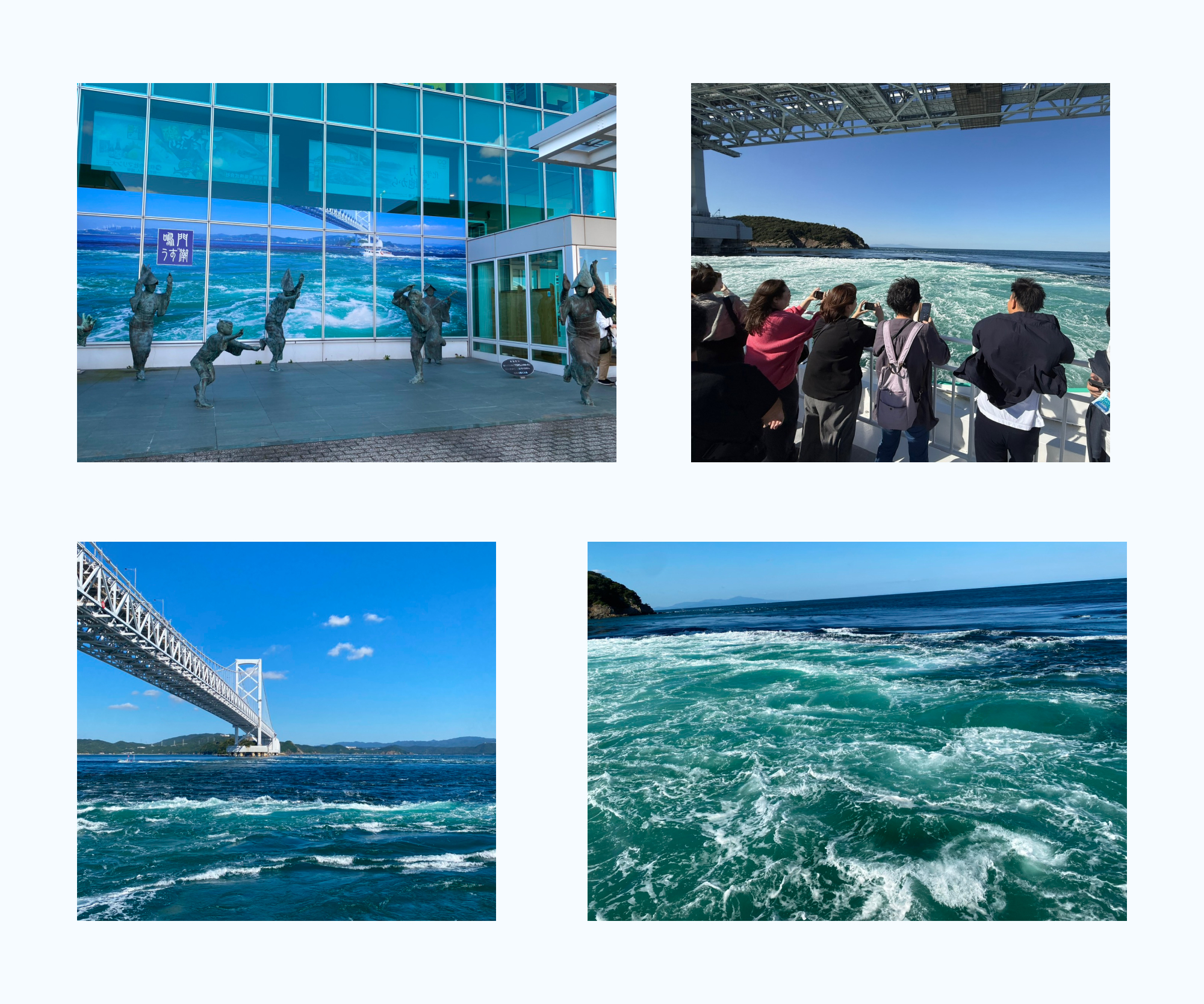 晴天でとても眺めが良く、うずしおのタイミングもバッチリで水中とデッキ両方から大迫力のうずしおを楽しむことが出来ました。