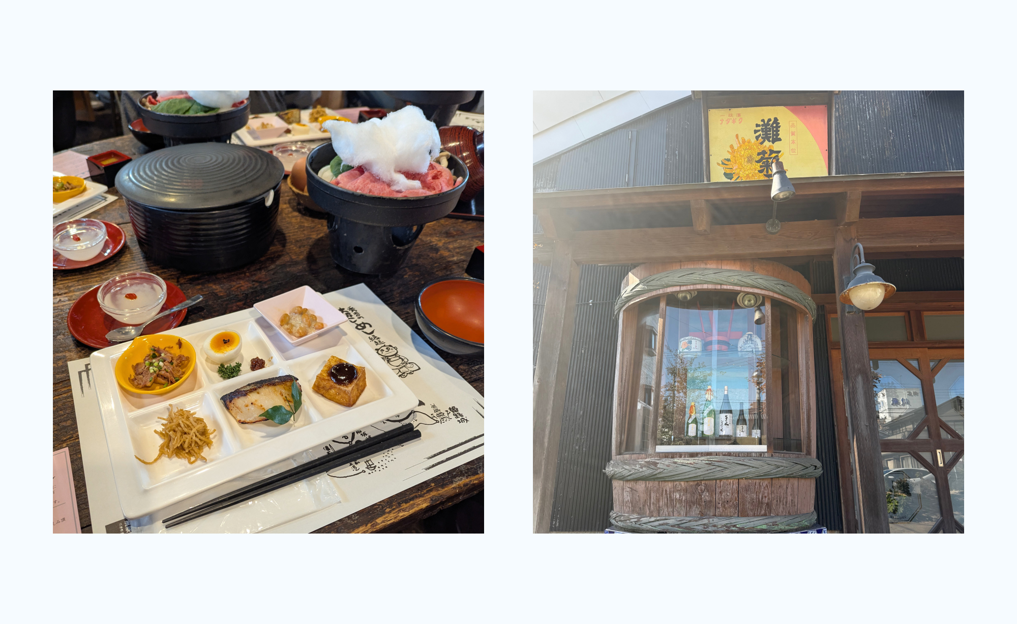 その後は昼食会場『姫路灘菊酒造』へ向かいました。お砂糖の代わりに綿菓子を用いた綿菓子牛鍋を頂きました。お肉はもちろんのこと中に入っていた玉ねぎなどのお野菜もとても甘くて美味しかったです。